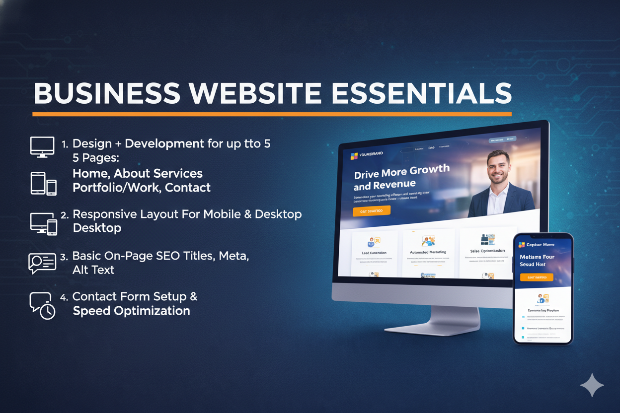 - Contact form setup and basic speed optimization